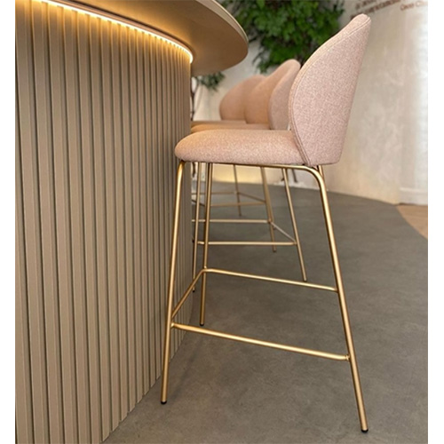 Banqueta Amelie-Tumar assento e encosto em multilaminado estofada. Base fixa tubular pintada.