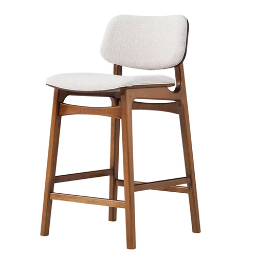 Banqueta Megan-Msul, é descrita como beleza sofisticada, uma mistura de suavidade e modernidade, bem como técnicas de produção contemporâneas, revelando detalhamento e classe altamente refinados. Estrutura em madeira, assento e encosto em compensado anatômico laminado em madeira natural (cinamomo). Assento e encosto estofados