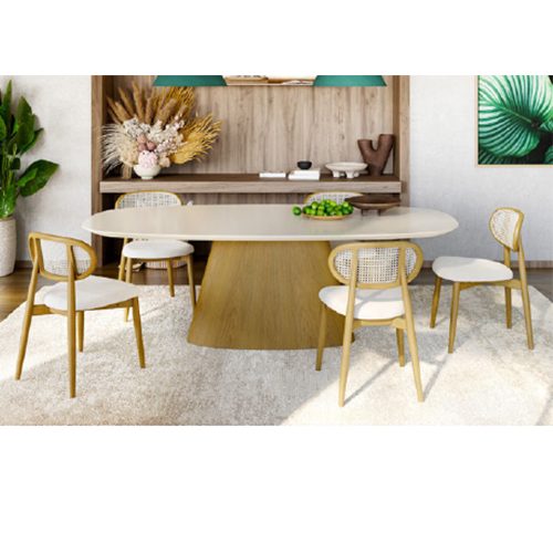 A Cadeira Cora-J.Marcon se destaca pela fluidez e harmonia entre materiais naturais. Seu design combina a sofisticação da madeira com o acolhimento da palha, resultando em uma peça leve e elegante.