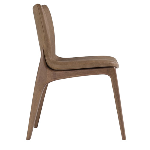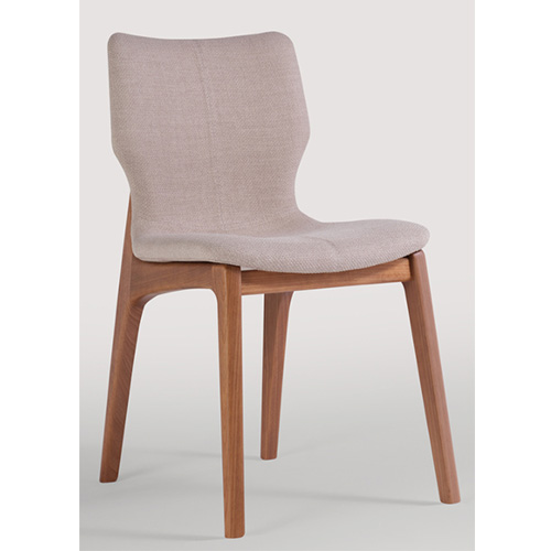 Cadeira Senda-Tumar com estrutura interna em multilaminado anatômico estofada. Base fixa em madeira maciça.