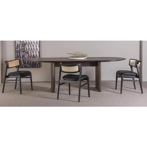 A Mesa Oslo-Gottems destaca-se pelos traços curvos presentes tanto na base quanto no tampo, criando uma atmosfera mais acolhedora e relaxante. Esses detalhes conferem à mesa uma estética suave e elegante, adicionando uma sensação de nobreza ao ambiente.