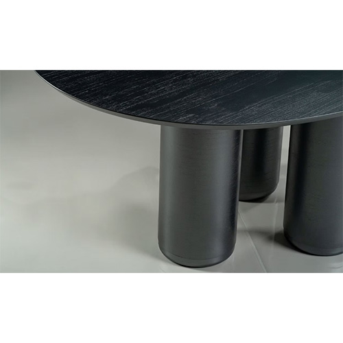 As formas tubulares graúdas e abauladas da série de mesas de jantar Comfy-Msul encorajam nosso imaginário para apostar em móveis que proporcionem para o décor energias positivas através de composições dinâmicas que são refinadas e brincalhonas. Base e tampo produzidos em MDF revestido em lâmina natural de madeira cinamomo.