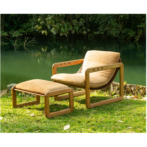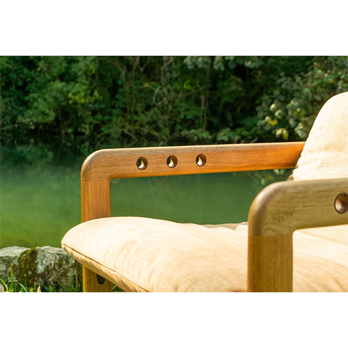 Representando a força e o vigor da natureza, a poltrona Seiva-Estofados Jardim traz a madeira natural como estrutura. O conforto ainda é reforçado pela almofada solta do assento, que agrega versatilidade e permite personalização através de seu movimento deslizante pela base em couro sintético laminado.