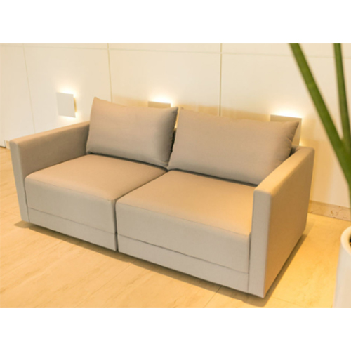 Assento: Fixo, percinta elástica, espuma SOFT D28 , SOFT D23 ,manta de fibra poliéster 100g compactada, molas POCKET. Assentos em módulos.