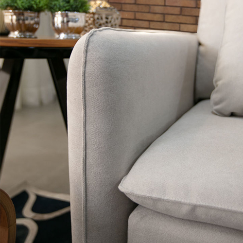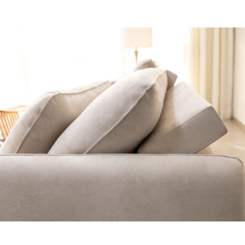 espuma SOFT D28 e SOFT D23, Pillow Top SOFT D23, molas BONNEL, manta de fibra poliéster. ENCOSTO: Reclinável, almofadas soltas, fibra siliconizada, percinta elástica. Acompanham almofadas lombares. BRAÇO: 10 cm de largura, espuma D 28 e manta de fibra poliéster. PÉS: Madeira Imbuia, 4,5 cm de altura.